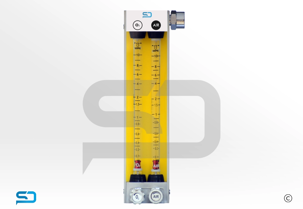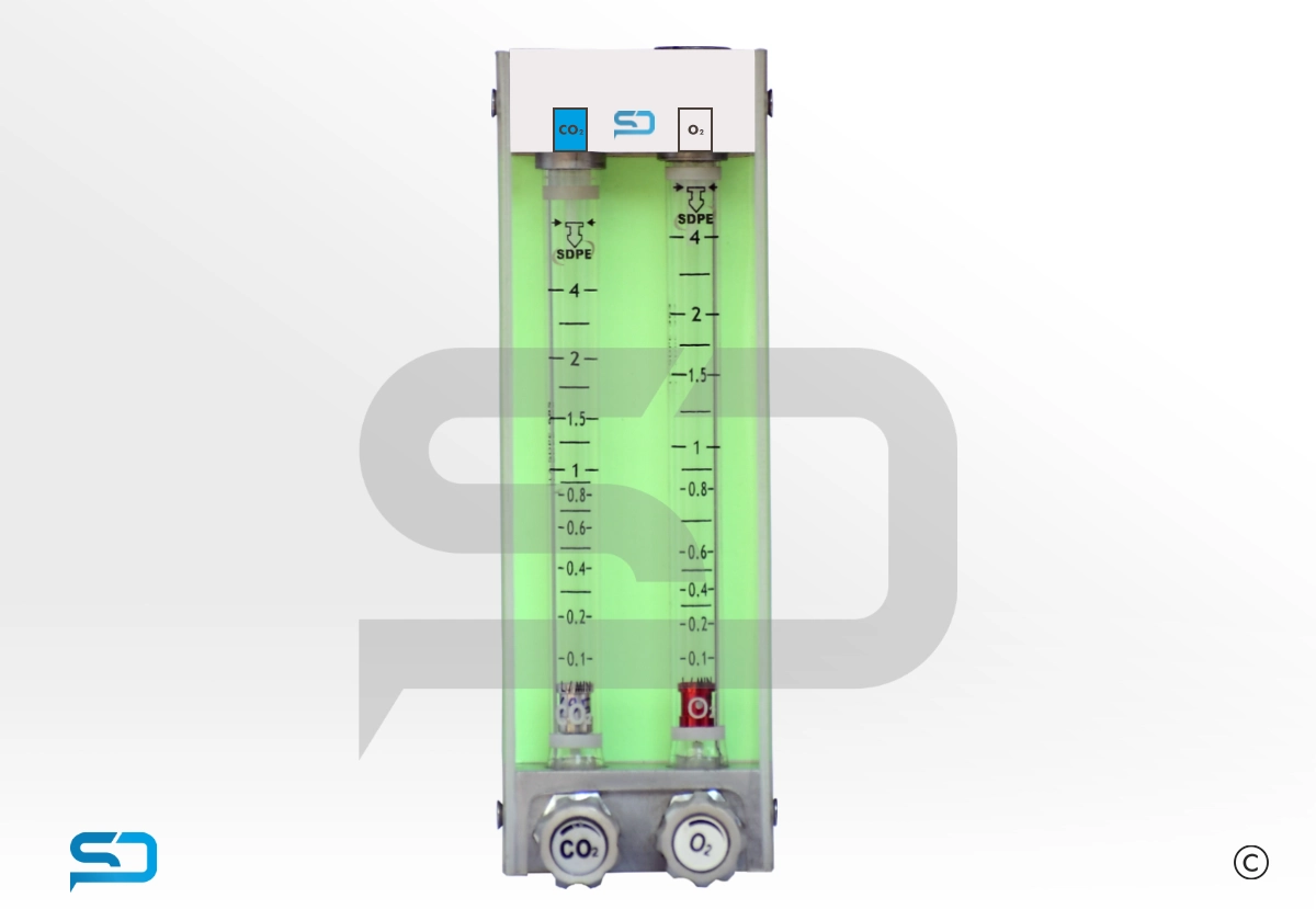 SDPE Veternity Anesthetic Flow Meter (Rotameter) consist of housing and single, dual oxygen calibrated glass tubes with float.
